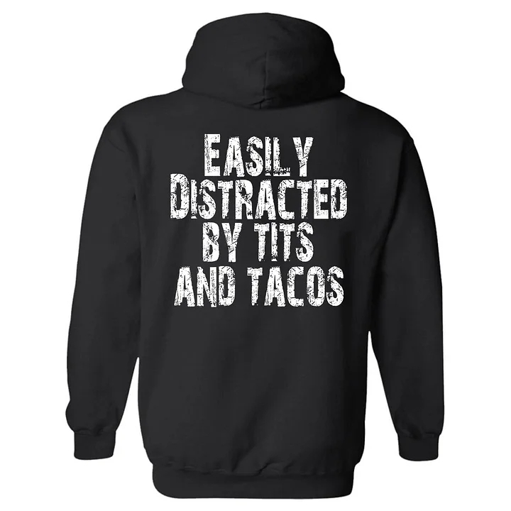 Easily Dietracted By Tits And Tacos Printed Men's Hoodie